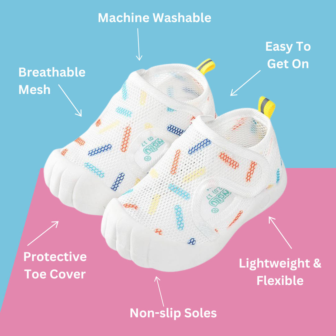 Say goodbye to damaging footwear and hello to shoes designed to support healthy foot development for your little one. Featuring breathable mesh, a non-slip sole, a wide toe box, and a protective toe cover โ comfort and safety come first with every step.