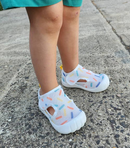 Our shoes are specially designed for growing children, with every detail made to support healthy, natural movement. They feature a wide toe box to let little toes spread and develop properly, grippy non-slip soles to help prevent slips and falls, and a protective toe cover for added safety during play. Lightweight and flexible, they move with the foot instead of restricting it, while breathable mesh keeps tiny feet cool and comfortable. Plus, they're easy to slip on—making life a little simpler for parents and kids alike.