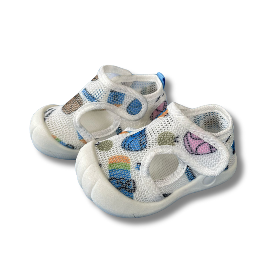 Flexible, lightweight and quick drying, our toddler velcro shoes are designed to meet the needs of active toddlers and busy parents. They feature a wide toe box to promote healthy foot development and non-slip soles and a protective toe cover to protect your little one from bumps and bruises as they learn to navigate the world. Our velcro toddler shoes are crafted from air mesh material, allowing your childโ€™s foot to breathe and are made from light and flexible materials, encouraging your little one to lift their feet while walking.